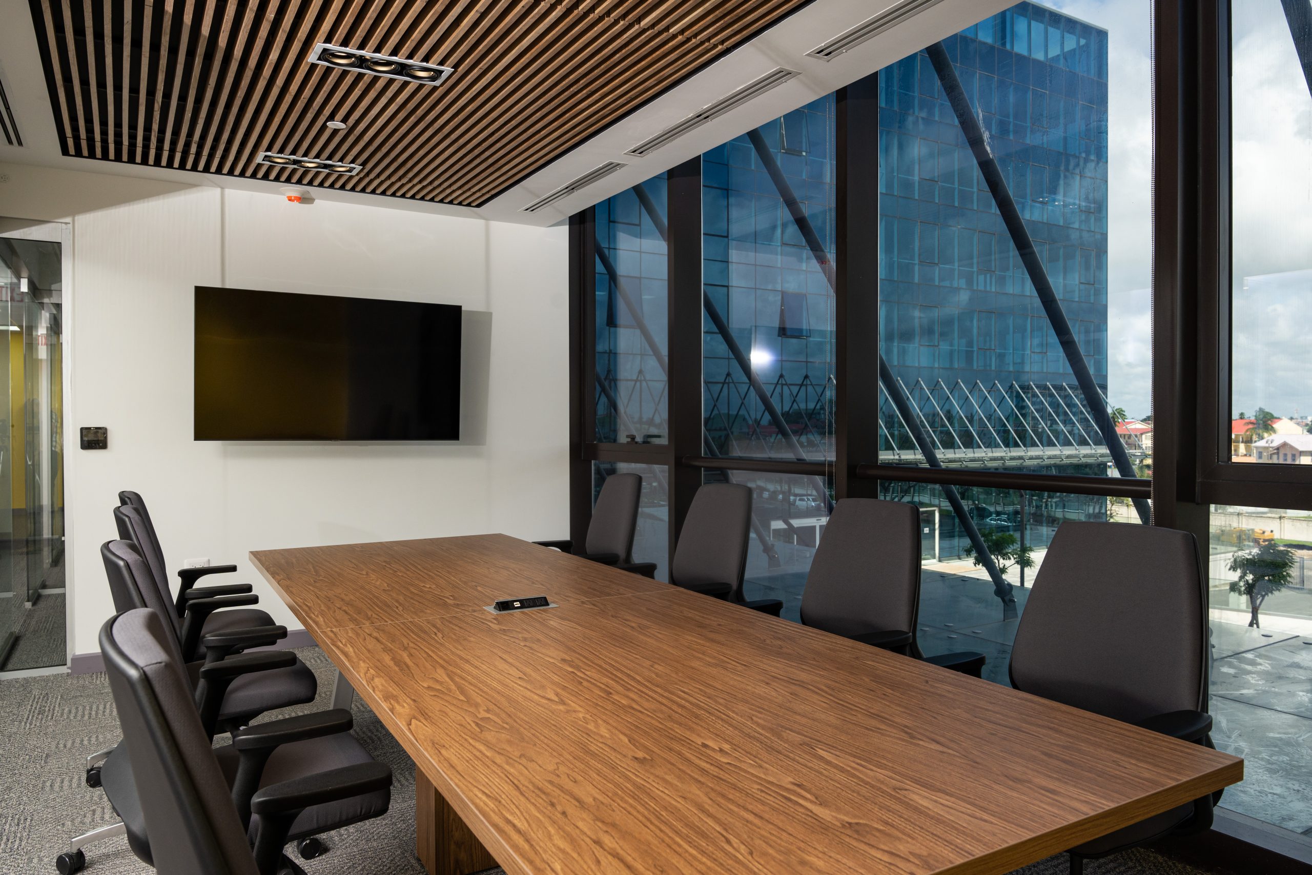 A team of talented interior designers joined us to create a contemporary office space that showcased Guyana’s stunning vistas and remarkable history. It seamlessly mixed open plan systems, comfortable employee areas, and client focused spaces. The end game a perfect marriage of style and function with a bonus view of the Demerara.