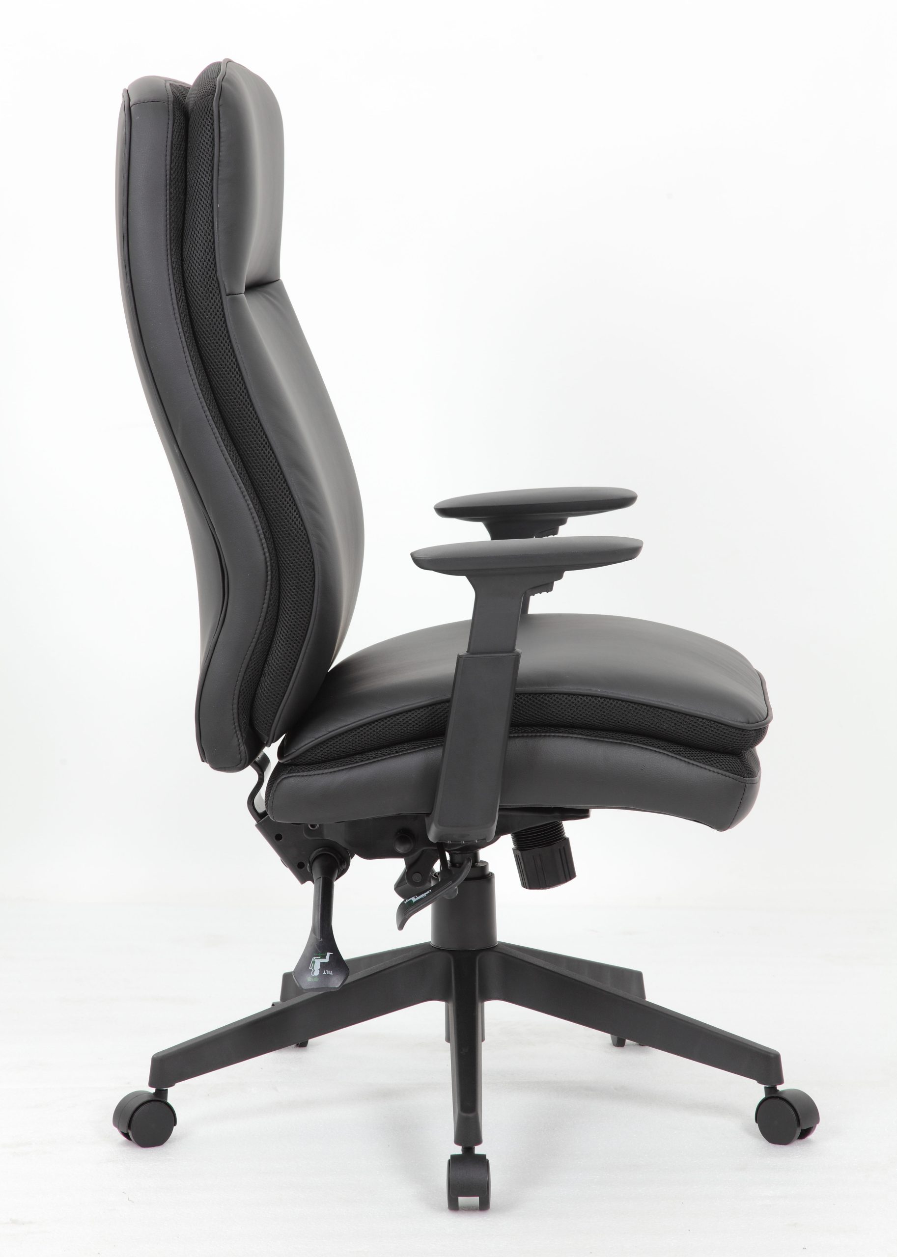 This CaressoftPlus high back executive chair brings comfort and stability to any office environment. It features beautiful and durable CaressoftPlus vinyl and high-back styling with exemplary lumbar support. Adjustable height arms. In addition, the chair has pneumatic gas lift seat height adjustment, an adjustable tilt tension control, a spring tilt mechanism, and locks in the upright position. Its large 27” 5 star nylon base provides stability while affording plenty of mobility thanks to its five hooded double wheel casters.